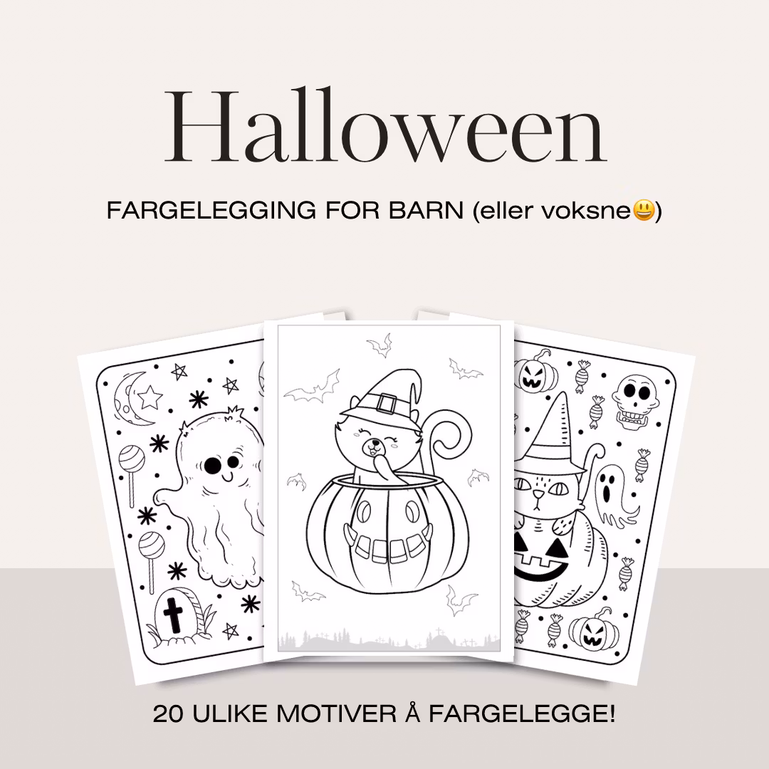 Helgas familieaktivitet?her får du 20 ulike Halloween motiver å fargelegge!Print dem ut så mange ganger du vil, eller fargelegg digitalt.Når du har kjøpt filen