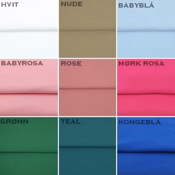 Stoffene er som er brukt er Øko-Tex 100 standard og/eller GOTS sertifisert